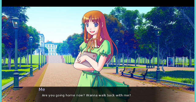 Por otro lado, el tema del diseño de la interfaz. Trabajo con Renpy, un motor para novelas visuales. El aspecto básico en mitad del juego, con el cuadro de diálogo, sería este: