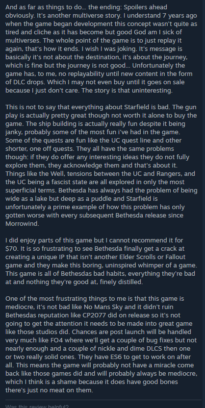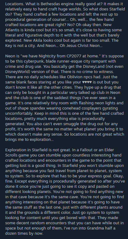 Ejemplo, antes se ha puesto esta reseña para intentar demostrar que es "Porque hatear a Starfield está de moda":
