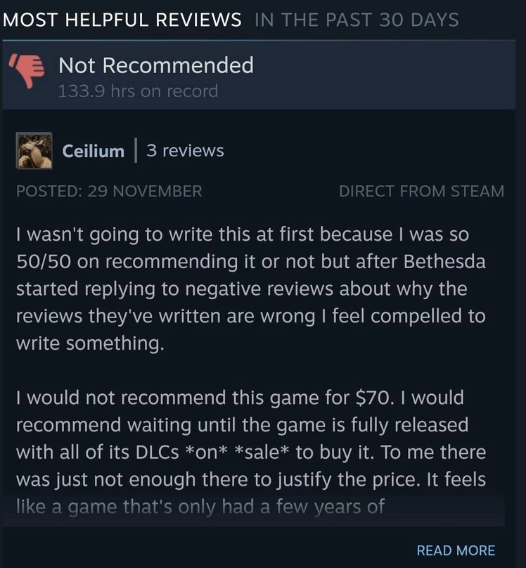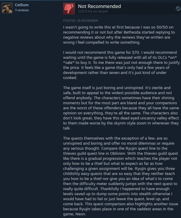 Vaya, resulta que en realidad es una reseña extendida de alguien que no está contento del todo con el juego y no "un hater del juego que está de moda". Y así muchas otras que se ponen en corto para defender al juego, pero luego resultan ser reseñas validas.