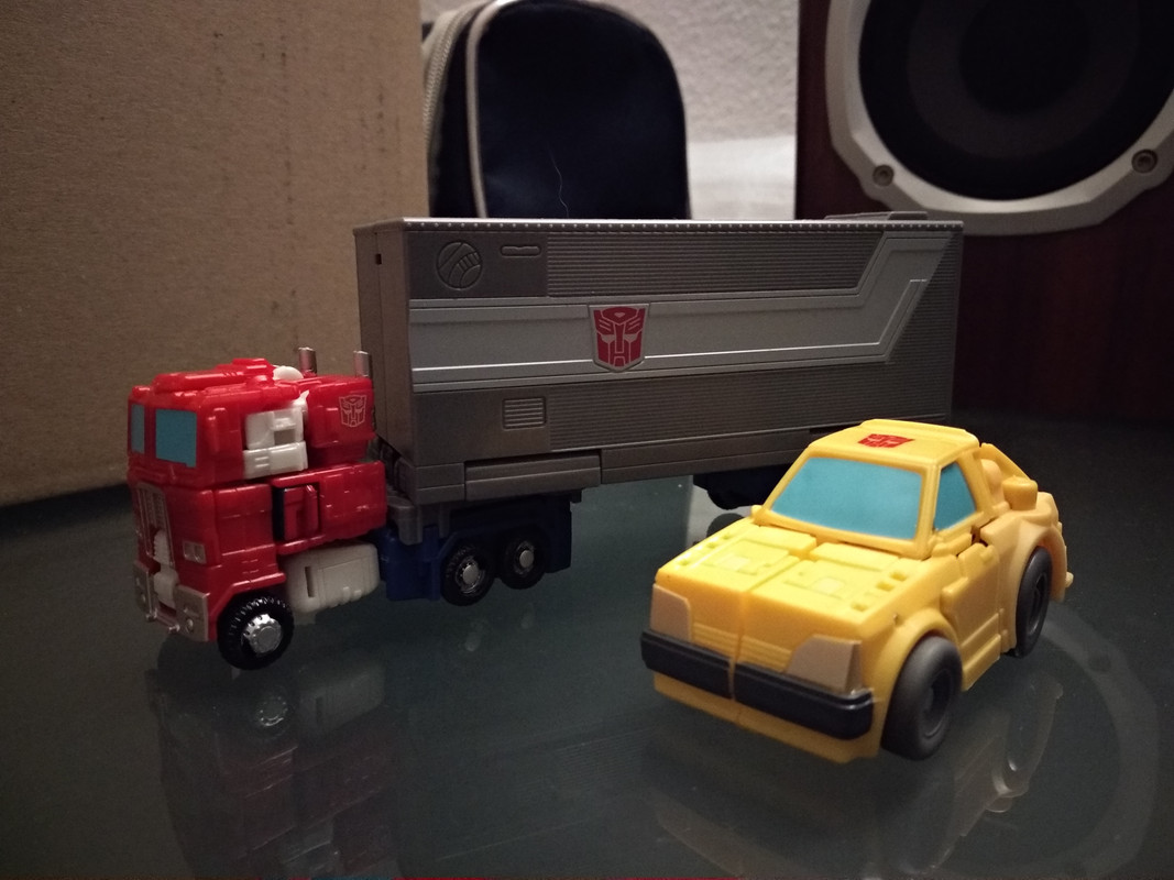 Esta noche he sacado otra cosilla de su caja, el pack de Optimus Prime Convoy y Bumblebee tamaño Core. Perdonad si la foto está algo oscura, ya les haré fotos en mejores condiciones.