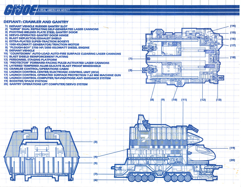 A pesar de tratarse de una nave de exploración y observación espacial, con claras finalidades científicas, el Defiant estaba equipado con cañones y ametralladoras en todas partes. Esto refleja la naturaleza de los G.I. Joes, siempre preparados para la acción y el combate, incluso en el espacio, porque nunca sabes dónde pueden atacar las fuerzas terroristas de COBRA y porque, reconozcámoslo, eran otros tiempos y la Guerra Fría seguía traumatizando a una generación de chavales sin que lo supieran.