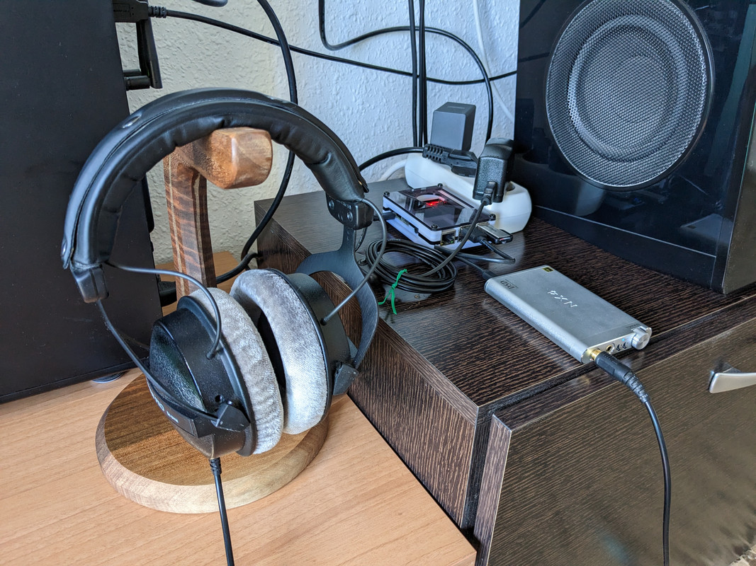Hoy ha sido tarde de alquimia sonora. Me he decidido a recuperar mi Raspberry Pi2B, que usaba hace un tiempo con Moode Audio para escuchar música digital en la mini cadena, para probar a escuchar música con el Topping NX4DSD y los Beyer DT770.