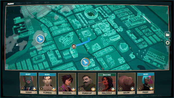 Utiliza el mapa estratégico para revisar las emergencias en curso y enviar a los héroes adecuados (o no tan adecuados) para encargarse de ellas. Equilibra los riesgos y las recompensas mientras tomas decisiones tácticas, sabiendo que cada elección puede tener consecuencias duraderas para tu equipo y la ciudad.