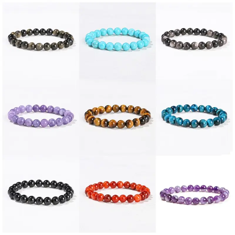 Hechas como con canicas de cristal, obsidiana, creo que se llamaba, eran conocidas como pulseras chinas/tibetanas, que éstas eran más del palo verde para la suerte, rojo para la prosperidad, azul para la serenidad, marrón para la protección, amarillo para la bondad y mierdas así.