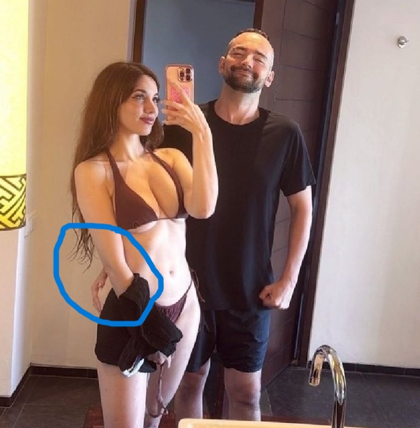 gerkhan Berbe Le esta tocando el culo, fijate mejor. Por la iluminacion de la foto y el tono de piel de la chica es dificil verlo de una pasada.