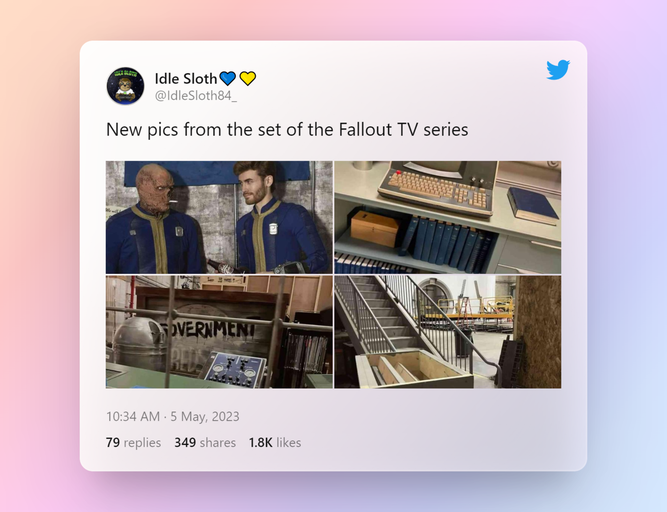 En esta ocasión podemos informar de que se han realizado más fotos al set de rodaje de la serie de Fallout. El usuario de Twitter IdleSloth84_ las ha publicado y ofrecen una perspectiva interesante de algunos elementos que veremos en esta producción, como por ejemplo la Nuka Cola, el Ghoul o el pipboy. Hay otras tres imágenes donde no se aprecian tantos detalles, pero sí parece ir acorde en la línea de lo que es un refugio de la saga Fallout.