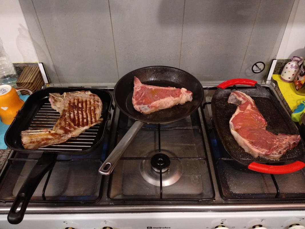 Anoche me encargué yo de hacer parte de la cena de Nochevieja en casa, preparando unas patatas fritas a lo pobre y 7 chuletones gigantes. Me faltaron utensilios de mayor tamaño para cocinar algunos de ellos 🤣