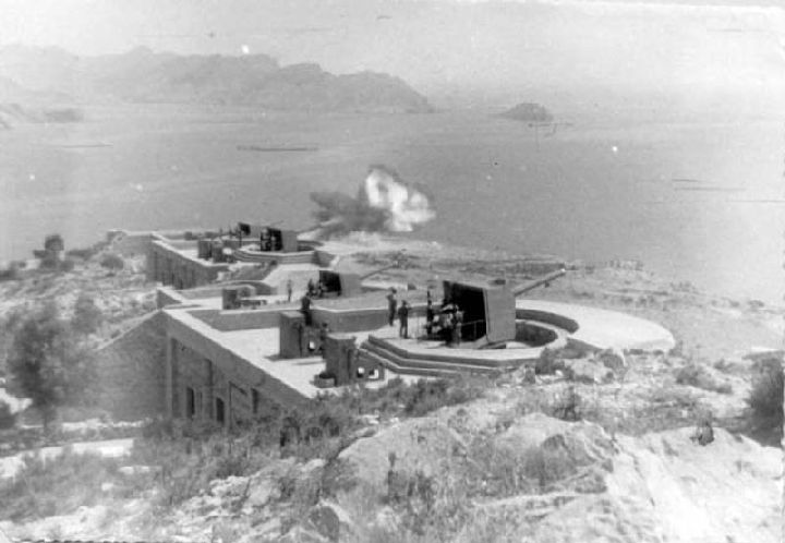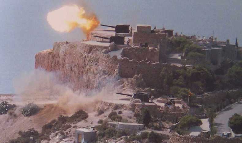 Batería de costa de Aguilones abriendo fuego en la década de 1960. https://aforca.org