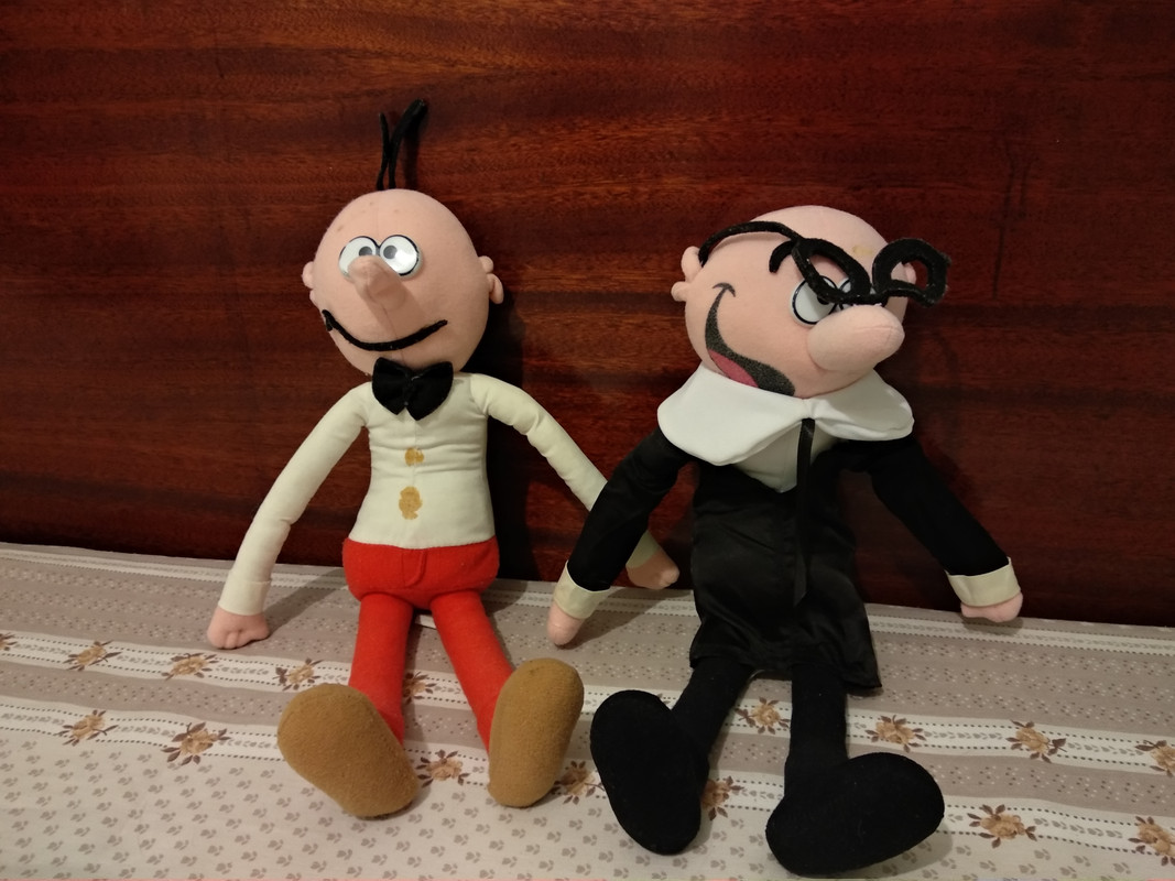 Ah, también en mi infancia, recuerdo que hubo una semana que estuve enfermo, y bastante triste por ello. Y un día, mi madre volvió a casa con dos peluches de Mortadelo y Filemón. Cuando me los dio, de que me dí cuenta estaba llorando de la emoción que sentía, tal era mi devoción por los personajes. Los peluches, que la verdad es que tenían buena calidad, todavía los conservo, aunque con señales del paso del tiempo: