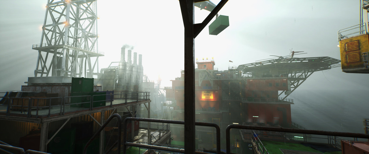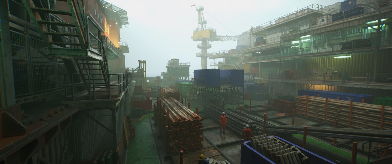 La acción es en una plataforma petrolífera en los años 70, es de lo más fotorrealista que he visto hasta ahora en un videojuego... ayuda el escenario, claro, pero es flipante y con una enfermiza atención al detalle de los escenarios.