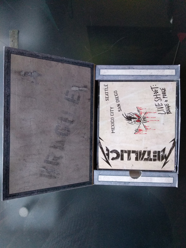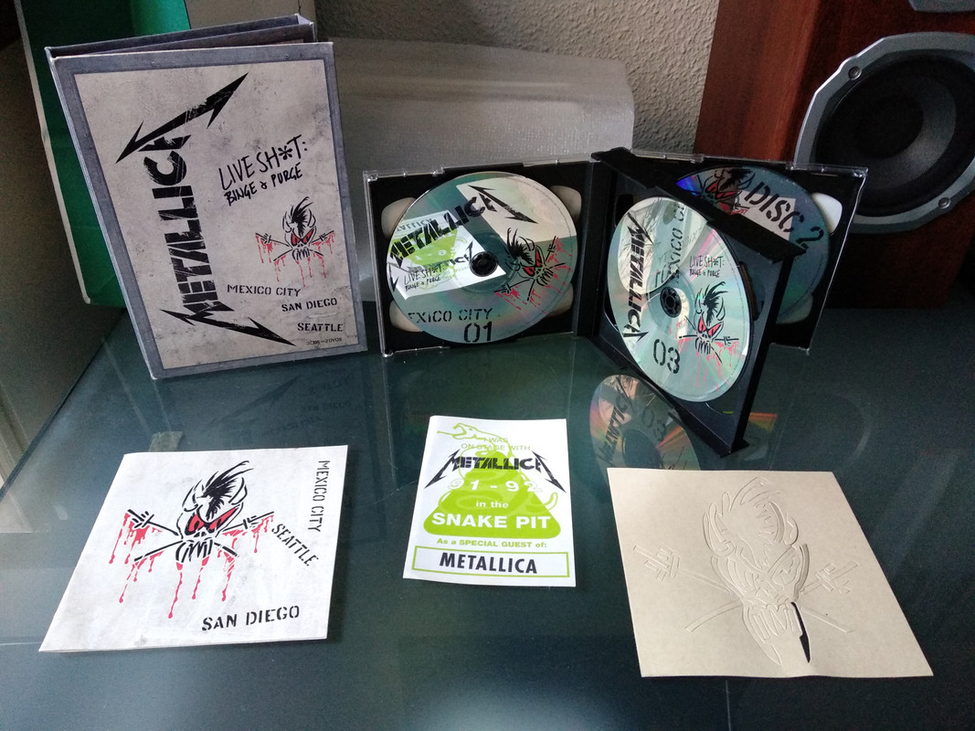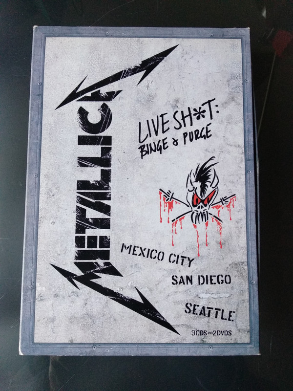 Como decía en mi anterior post, ayer llegó a mi casa el directo de Metallica Live Sh*t: Binge & Purge. Recuerdo que lo vi por primera vez en mi juventud, en un dvd pirata que todavía guardaré por ahí, y siempre me ha parecido uno de los mejores directos de la banda. De hecho hasta que hace unos años no me dio por buscarlo, no sabía que el producto realmente son 3 cds con el audio en directo del concierto en Ciudad de México de 1993, y 2 dvds con los conciertos de San Diego 1992 y Seattle 1989. Este último es el que yo vi en mi juventud, con la banda en pleno estado de forma. Me hacía ilusión tenerlo completo y original, y tras decidir comprarlo de una vez, lo he podido encontrar de segunda mano por Discogs a una tienda francesaa precio "decente" (unos creo que unos 59 euros incluyendo envío) y en muy buen estado.